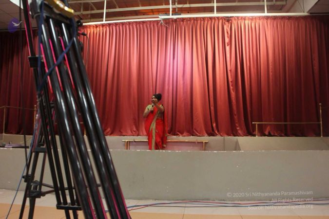 Screen is closed before the stage is opened for the darshan of HDH Nithyananda Paramashivam