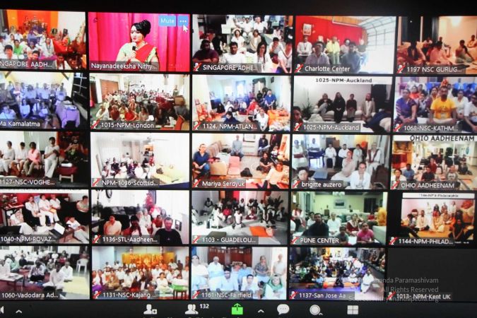 Maha Yoga welcoming delegates participating from across the world in the Aushadha convention in-person at Adi-kailaasa and in a two-way interactive video conferencing live