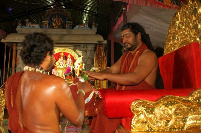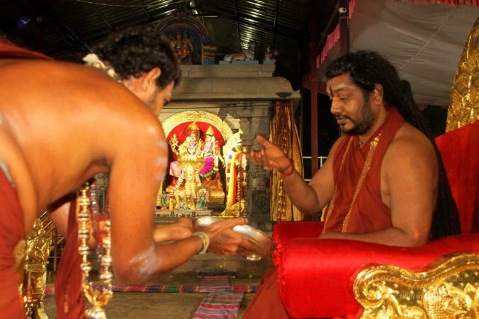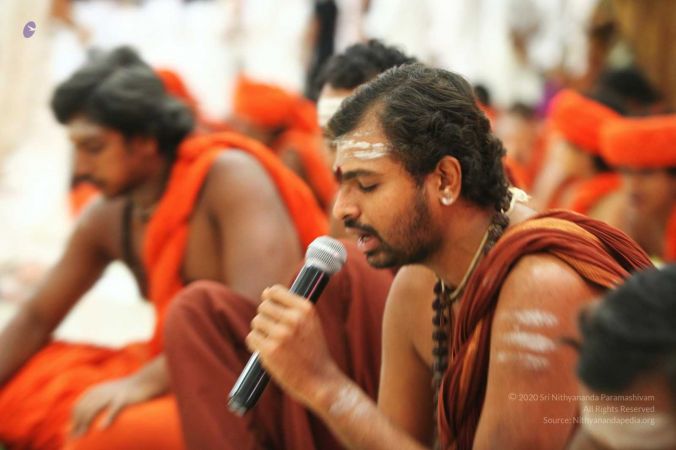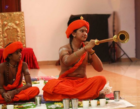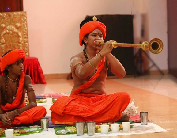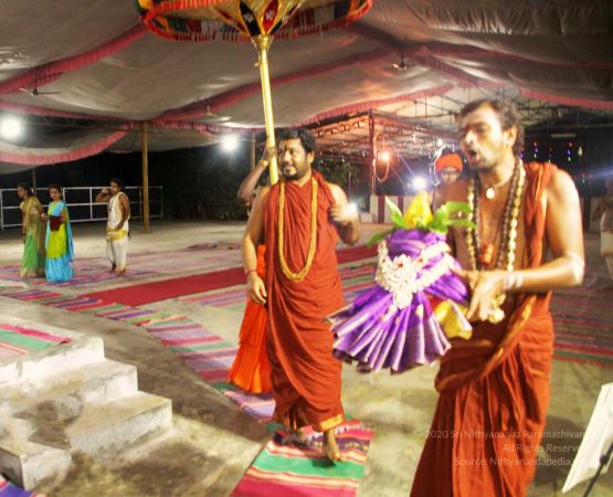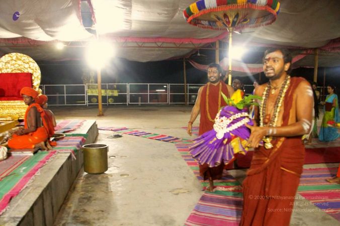 HDH Nithyananda Paramashivam welcomed with Poorna Kumba and Vedic sacred hymns