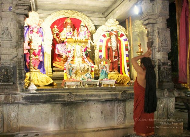 HDH Nithyananda Paramashivam offering prayers to deities at Sri Nithyanandeshwara-Nithyanandeshwari Temple - Adi Kailaasa