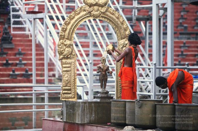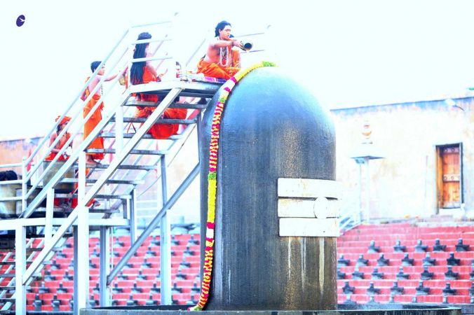 Ahbishekam of Vaidya Sarovar Linga performed by balasants