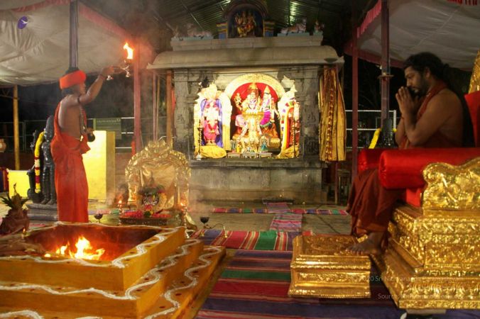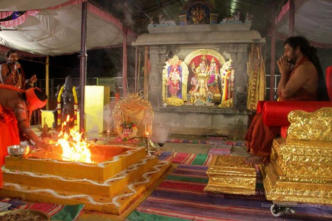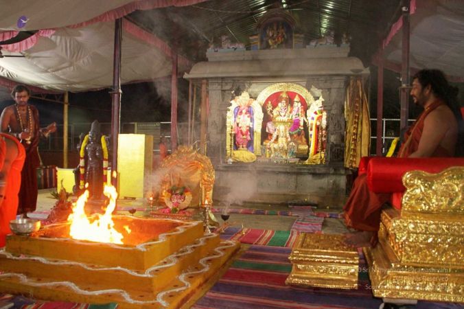 Kalasha stapana is made to invoke the presences of Kapilamuni to accept the yagna puja at Adi Kailaasa, Bengaluru Aadheenam