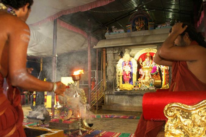 Balasant perfoming aarti to Vaidya Sarovar Linga and Bhogamurthy during ahbishekam