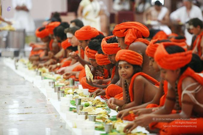 HDH Nithyananda Paramashivam hosts bandara for sanyasis, balasants, adheenavasis and delegates at Adi Kailaasa, Bengaluru Aadheenam